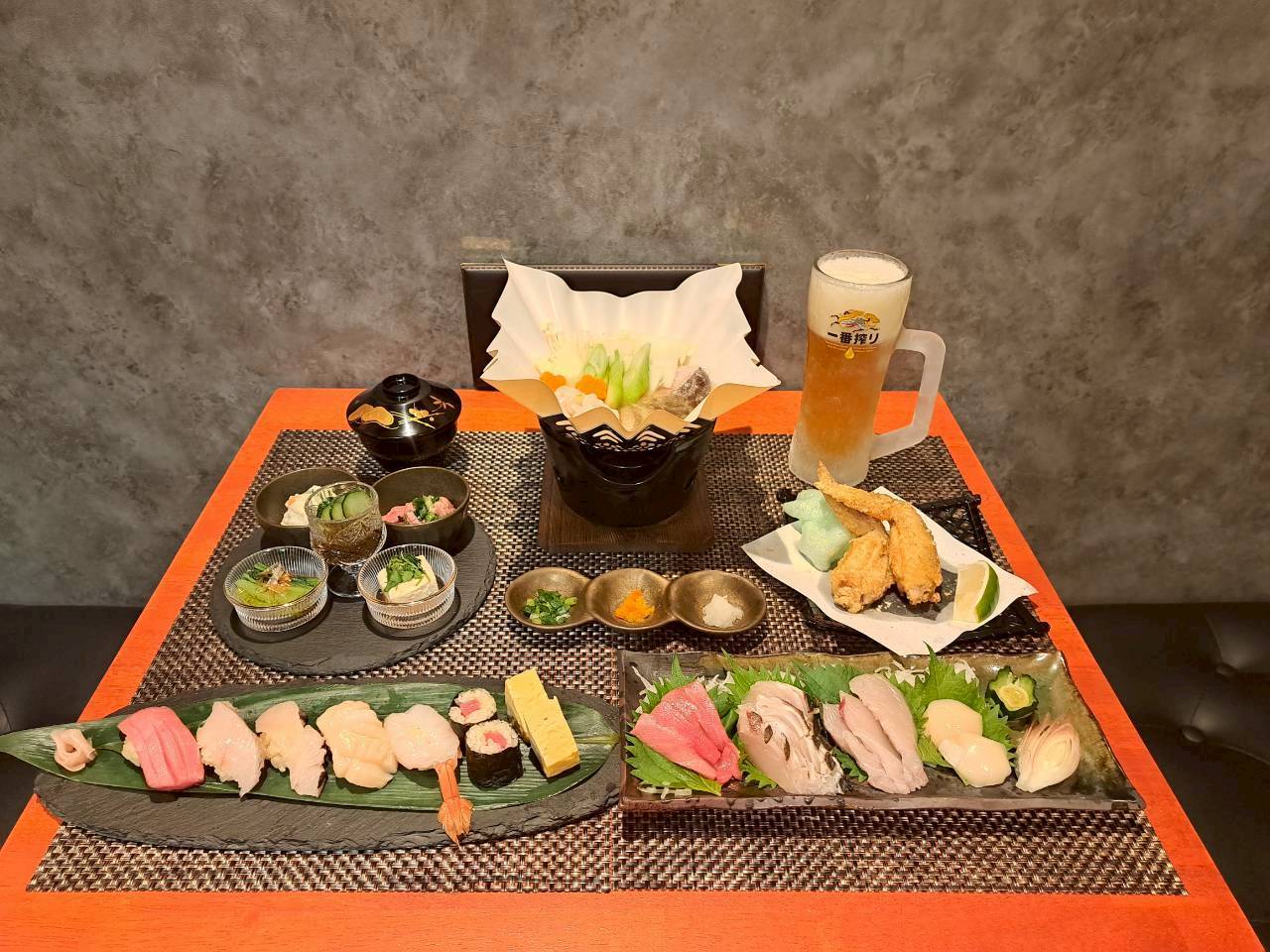 船橋市場で仕入れた旬の食材と船長が釣った新鮮な魚をご用意しております。